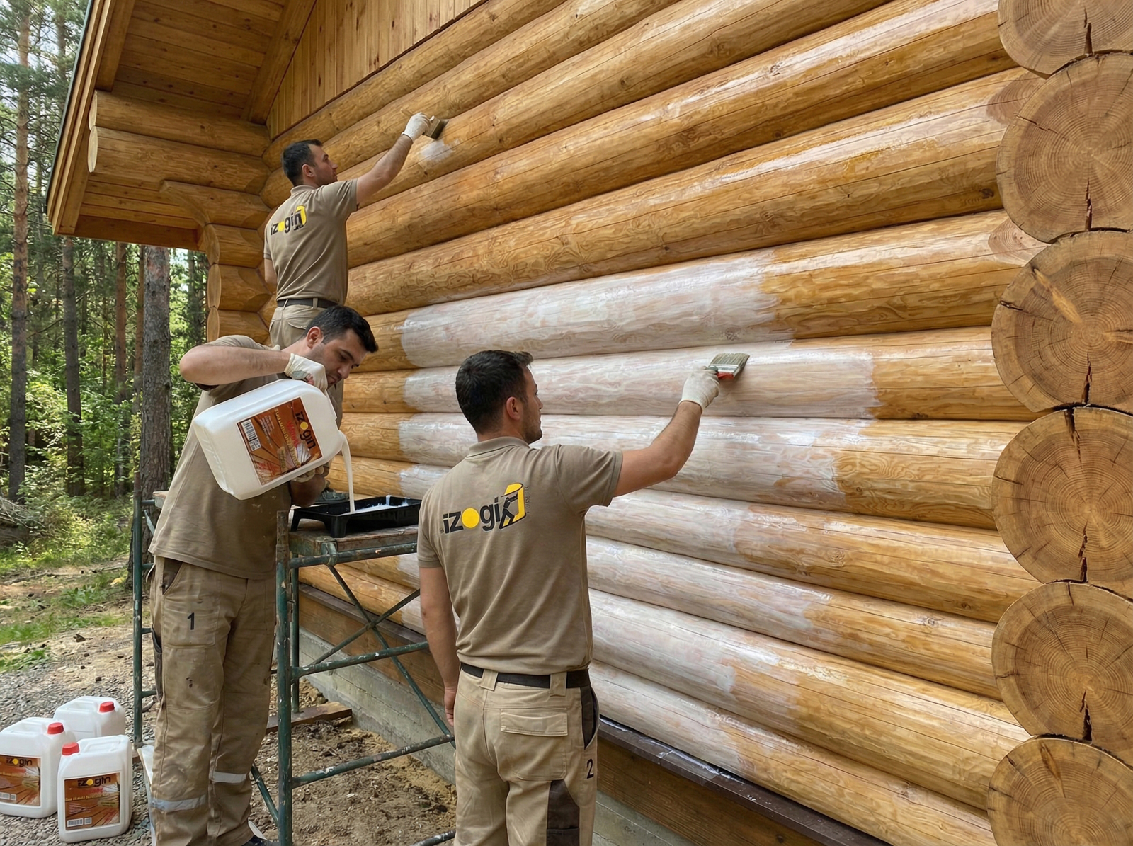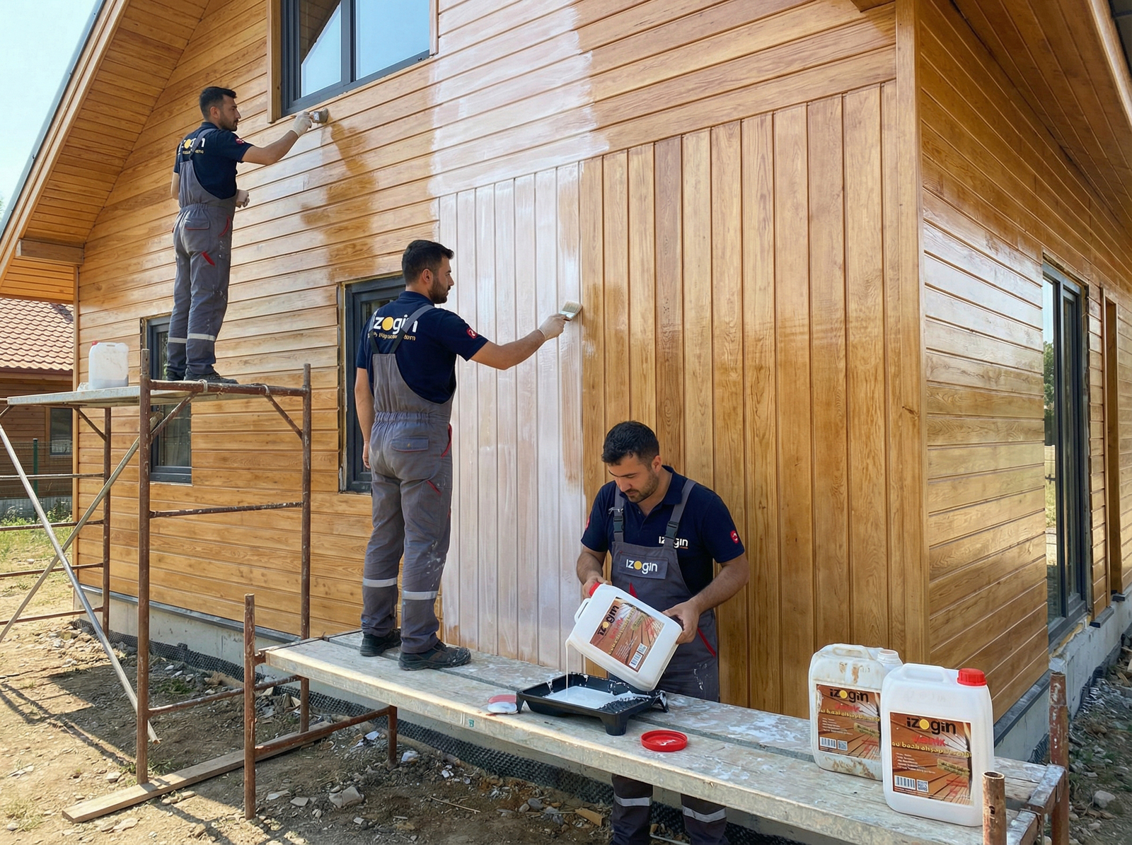 Yeni ahşap yüzeyler:pürüzsüz rendeli ahşap yüzeyi,su bazlı pigmentler yardımıyla renklendirilir.Naturel halde kullanılacaksa bu işlem gerekmez.Ahşap yüzeyi bakterilere karşı korunmak isteniyorsa,izogin preventin kullanılmalıdır.İzogin preventin renklendirilerek fırça veya rulo ile sürülür. Ahşap Tutuşmaya veya alevlenmeye karşı korunmak istenirse izogin fermo kullanılmalıdır.izogin fermo kullanılması halinde ayrıca izogin preventin kullanmaya gerek yoktur.Koruma ve isteğe bağlı renklendirme işlemi sonrasında,ahşap yüzeyin 24 saat kuruması beklenir.Kuruyan ahşap yüzeyine fırça veya rulo yardımıyla 1 kat (astar kat)izogin vernik sürülür.Üzerine12 saat sonra 1.kat izogin vernik sürülür. b)eski ahşap yüzeyler.Eski ahşap yüzey üzerindeki,boya,vernik ve kaplama malzemesi zımparalanarak tamamen temizlenmelidir.Bu temizleme işleminden sonra yeni ahşap yüzeylerdeki uygulama yapılır.